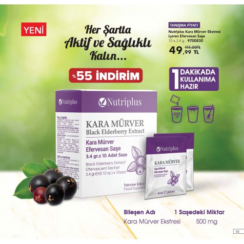 Etiketler: Farmasi Nutriplus Kara Mürver Ekstresi içeren Efervesan Saşe 10 x 3.4 g